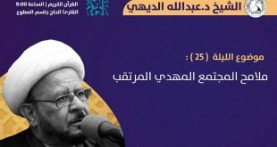 . ‘ ۩ ﻣأﭠم ﻛرزﻛٱن .. . . البرنامج الرمضاني الكرزكاني . 🌙 برنامج مأتم كرزكان للرجال للشهر الفضيل عبر البث المباشر . الليلة الخامسة والعشرين : ليلة الثلاثاء 18/05/2020 . الشيخ د. عبدالله الديهي . عنوان المحاضرة : ملامح المجتمع المهدي المرتقب . . دعاء الإفتتاح | الساعة 8:30 …