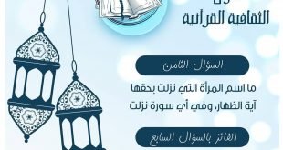 سؤال اليوم الثامن من المسابقة الثقافية اليومية القرآنية “نون”… القسم الثاني… والتي تقدمها لجنة تعليم القرآن الكريم ضمن برنامجها الرمضاني السنوي للشهر الفضيل والذي يعرض ضمن باقة البرنامج الرمضاني الكرزكاني . . الإجابة فقط تكون من خلال ستوري انستغرام لجنة تعليم القرآن الكريم . . @tquran @tquran #البرنامج_الرمضاني_الكرزكاني #تعليم_القران #كرزكان …