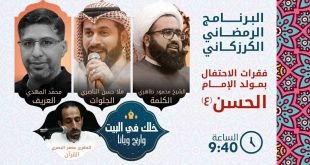 البرنامج الرمضاني الكرزكاني فقرات حفل مولد الإمام الحسن “ع” غدا ليلة السبت الساعة 9:40 المصدر