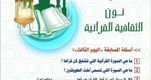 أكمل القراءة »أسئلة اليوم الثالث من المسابقة الثقافية اليومية القرآنية “نون” والتي تقدمها لجنة…