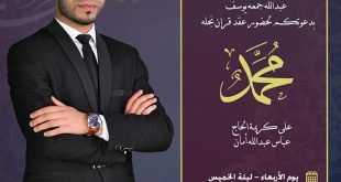 أكمل القراءة »يتشرف عبدالله جمعة يوسف بدعوتكم لحضور عقد قران ابنه محمد .. …