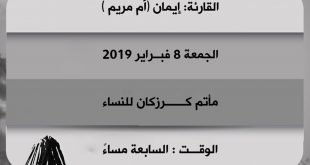 أكمل القراءة ». يحيي مأتم كرزكان للنساء هذه الليلة ذكرى شهادة السيدة عليها السلام (على رواي…
