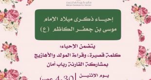 أكمل القراءة »إحياء ذكرى ميلاد الإمام الكاظم (ع) بمأتم كرزكان للنساء …