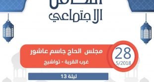 أكمل القراءة »ضمن برامج التكافل الاجتماعي تواشيح.. مجلس الحاج جاسم عاشور الساعة …. ١١:٠٠ مس…