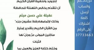 أكمل القراءة »إبنة القرية عقيلة علي حسن ميثم تتم حفظ عشرون جزء من القرآن الكريم بإمتياز نبارك…
