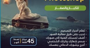 إعلان مدفوع: تعلم.. وكن مبدعاً مع أشهر برامج التصميم Photoshop ( للكبـار والصغــار ) – تعلــــم أســــرار التصميــــــــــم – تدرب على طرق معالجة الصــور – أضف لمستك الفنية إلى صورك – صمم شعارك وكرتك الشخصي – أخرج برشـورك الدعائي بنفسك 45 دينـارفقط / لمدة شهــر —- المعهد الحديث فرع مدينة …