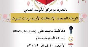 أكمل القراءة ». بالتعاون مع مركز الكويت الصحي؛ يستضيف مأتم كرزكان للنساء الورشة الصحية (الإ…