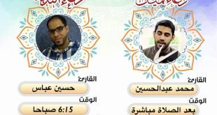 – . . ۩ مأتم كرزكان .. . . « القرآءة الأسبوعية» . . *الخطيب* : الشيخ علي عاشور *الوقـــت* : 7:00 م . *المكـــان* : مأتم شباب كرزكان *اللــــيلة* : ليلة الخميس *الموافق* : 23/1/2019 . . يهدى ثواب هذا المجلس إلى أم البنين . . 《الفاتحه》 . . …