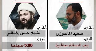 أكمل القراءة ». إعلان دعاء كميل ودعاء الندبة بجامع كرزكان الكبير لهذا الإسبوع 2 اغسطس 2018 م …