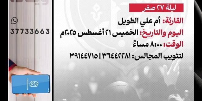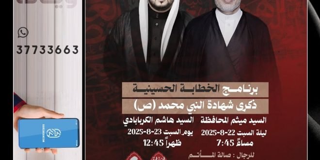 🎙️السيد ميثم المحافظة 📆 ليلة السبت 22/8/2025 🕣الساعة 7:45 مساءً 🎙️السيد هاشم الكربابادي 📆 يوم السبت 21/8/2025 🕣الساعة 12:45 ظهراً 🔺يوجد مكان خاص للنساء في ملحق المأتم 🎥 يمكنكم متابعة المجلس في قناة المأتم في اللنك بالبروفايل ⚠️للراغبين في *تثويب المجالس* على شرف مراحيمكم أ.جاسم الشيخ : 39993404 @matmalgharbi …