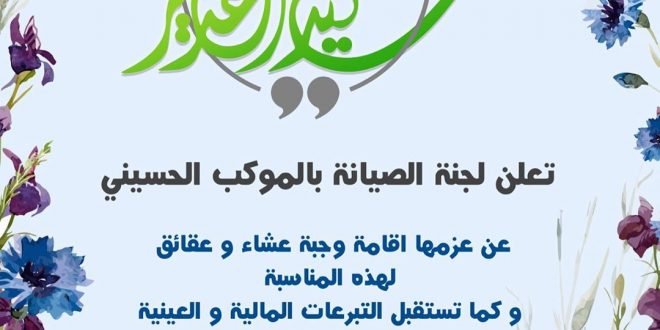 تعلن لجنة الصيانة بالموكب الحسيني عن استقبال المساهمات لعقيقة عيد الغدير …