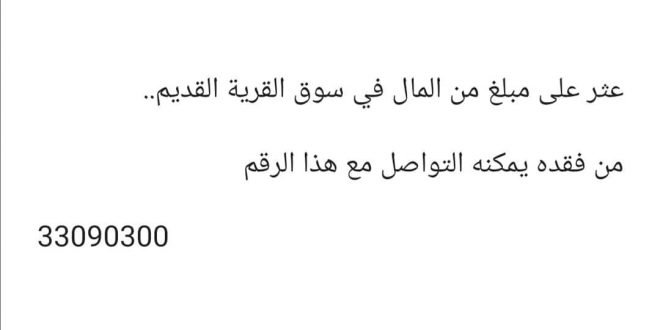 عثر على مبلغ من المال في سوق القرية القديم.. من فقده يمكنه التواصل مع هذا الرقم 33090300 #مفقودات_كرزكان #مفقودات #كرزكان #كرزكانكم #أخبار_كرزكانكم #منوعات_كرزكانكم #قريتنا #أخبار_القرية #قريتنا_الحبيبة #قرية_كرزكان #أخبار_قرية_كرزكان #قرى_البحرين #مملكة_البحرين #البحرين #بحريننا #bahrain #karzakan #karzakancom #karzakancom_news المصدر