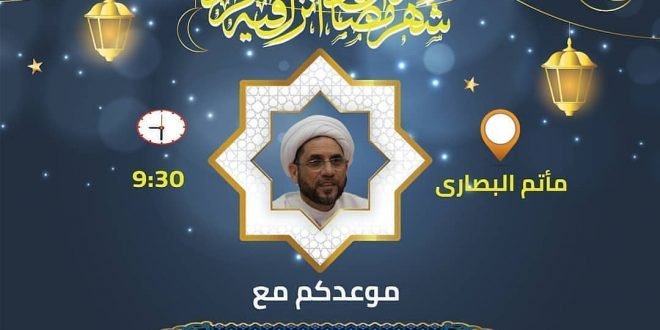 يستضيف مأتم البصارى في ليالي الشهر الكريم ١٤٤٠ هج سماحة الشيخ شاكر الفردان الساعة: 9:30 مساءً #مأتم_البصارى المصدر