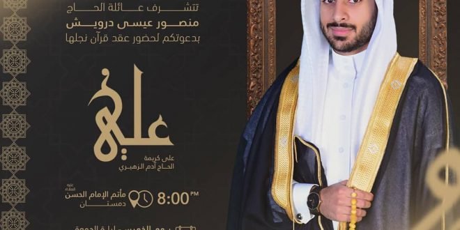 تدعوكم عائلة الحاج منصور عيسى درويش لحضور حفل عقد قران نجلهم علي #زواج_كرزكان #كرزكان #كرزكانكم #أخبار_كرزكانكم #منوعات_كرزكانكم #قريتنا #أخبار_القرية #قريتنا_الحبيبة #قرية_كرزكان #أخبار_قرية_كرزكان #قرى_البحرين #مملكة_البحرين #البحرين #بحريننا #bahrain #karzakan #karzakancom #karzakancom_news المصدر
