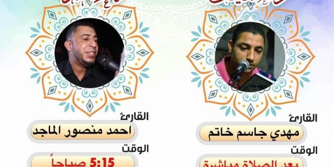 قراءة المناجاة الشعبانية بعد صلاة العشائين بمسجد الرسول (ص) بمشاركة القارئ خليل عبدالرسول المصدر