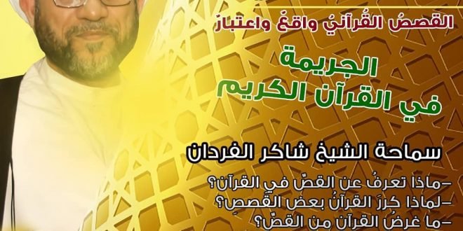 🔍 *ماذا تعرفُ عن القصِّ في القرآن الكريم؟!* 🔍 *لماذا كررَ القرآنُ الكريم بعض القصصِ؟!* 🔍 *ما غرضُ القرآنِ الكريم من القصِّ؟!* *إجابات هذه الأسئلة وغيرها تجدها في حضورك الفاعل دورة *#القصصُ القُرآنيُ … واقعٌ واعتبارٌ#* مع *سماحة الشيخ شاكر الفردان* *ليلة غدا الخميس الموافقة لتاريخ 24-4-2019… منزل الاستاذ علي …