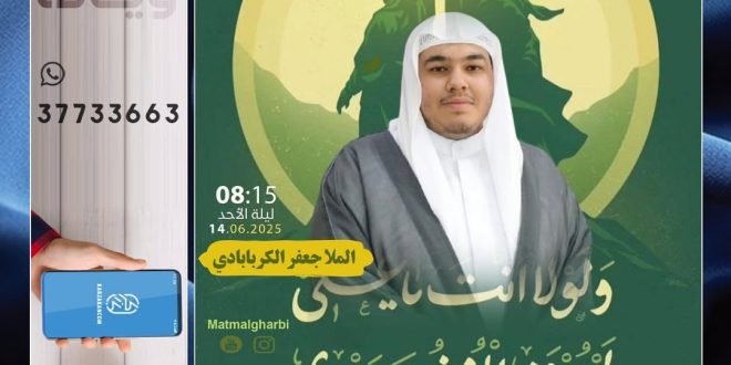 على حب الإمام الحسين يطعمون استقبالاً لموسم الأحزان، محرم الحرام 1447هـ يعلن مأتم كرزكان الغربي عن فتح باب الثواب للمساهمة بتقديم وجبات الغداء و العشاء في إحياء عشرة محرم الحرام و مناسبات أهل البيت (ع) للمساهمة أو الاستفسار : يونس جعفر ضيف 36417447 أحمد ميرزا الكش 39545224 رضا علي إبراهيم …