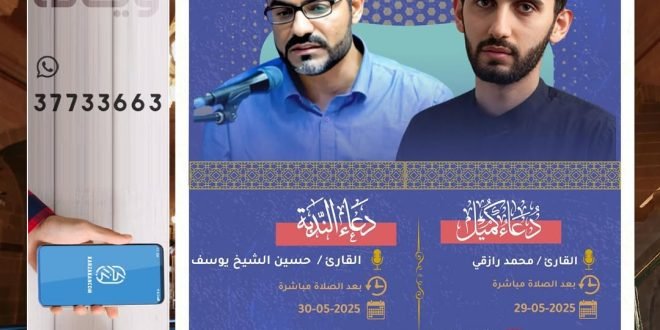 …•|【 دعاء كميل&دعاء الندبة 】|•… 📖 *دعاء كميل* 🗓 *29/05/2025* ⏱ بعد الصلاة مباشرة 🗣 القارئ محمد رازقي 📺 *الـبـث المباشر على قناة* *مـأتـم كـرزكـان للرجـال* @matamkarzakan 📖 *دعاء الندبة* 🗓 *30/05/2025* ⏱ بعد الصلاة مباشرة 🗣 القارئ حسين الشيخ يوسف @jame3karzakan المصدر: إنستغرام