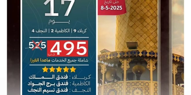 || *حملة العيس – مملكة البحرين*|| || *لـ نكن بجانب الإمام الحسين (ع) في يوم عرفة و جانب أمير المؤمنين (ع) في يوم الغدير*|| *🇮🇶 رحلات حملة العيس الى عراق الحسين (ع) 🇮🇶* 📍 *الرحلة الأولى : مع عرض خاص يسري إلى تاريخ ٨ مايو ٢٠٢٥م:* View this post on …