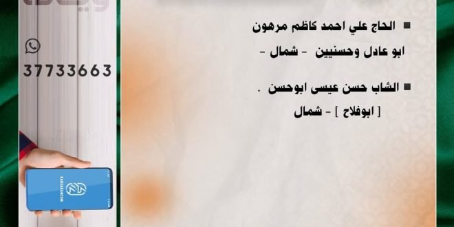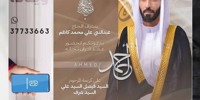 ▫️يتشرف الحاج عبدالنبي علي محمد كاظم بدعوتكم لحضور عقد قران نجله . 🌹أحمد🌹 . ▫️على كريمة المرحوم السيد فيصل السيد علي السيد شرف . 📆 يوم الاثنين (ليلة الثلاثاء) ٢٠٢٥/٥/٥م 🕗 الوقت : ٧:٣٠ م 🕌 المكان : مأتم الجبور – داركليب . 🌹وبحضوركم تكتمل الأفراح و المسرات🌹 المصدر: إنستغرام
