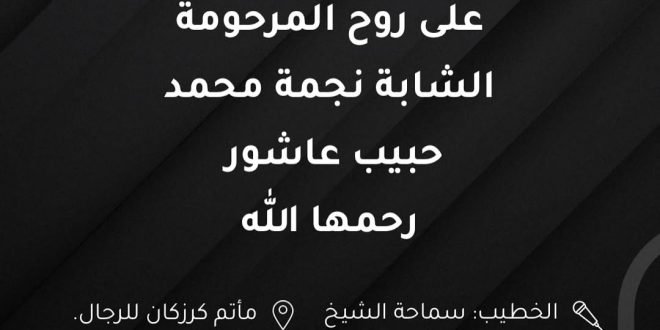 مساء يوم الجمعة الموافق 2/5/2025 الساعة 7:15 القراءة الحسينية الساعة 8:15 الخطيب: سماحة الشيخ خليل الشاخوري. مأتم كرزكان للرجال. الفاتحة، المصدر: إنستغرام