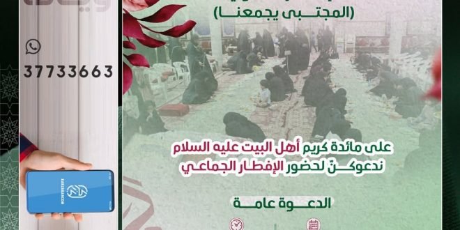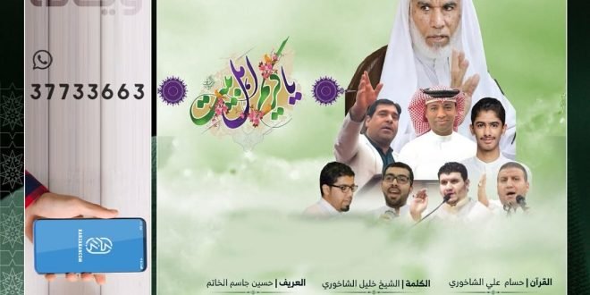 وإحتفالية مرور عام على افتتاح المسجد ▫️اليوم : الأحد ليلة الاثنين ▫️التاريخ :16.3.2025 ▫️الوقـت : الساعة ١٠:٣٠ مساءً ▫️برنامج الاحتفال ▫️ القرآن الكريم : حسام علي الشاخوري ▫️ كلمة الحفل : سماحة الشيخ خليل الشاخوري ▫️ العرافة: حسين جاسم خاتم ▫️الشعر : الشاعر أ. علي عبدالوهاب البقالي ▫️ الجلوات :فرقة …