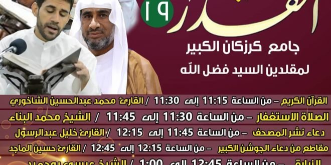 برنامج إحياء ليلة القدر 19 لمقلدي السيد فضل الله غدا بجامع كرزكان الكبير المصدر