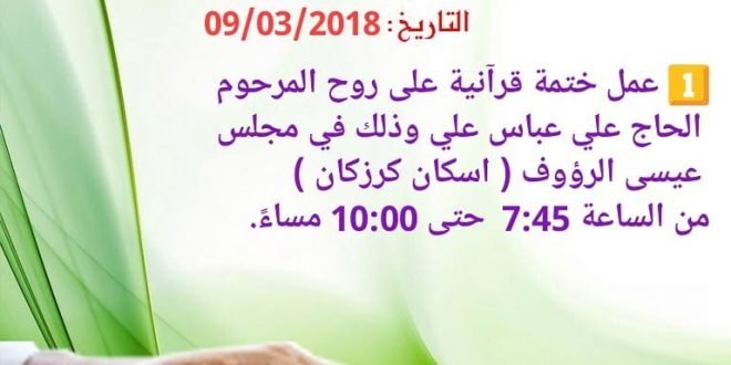 . ◾ انتقلت إلى رحمة الله ورضوانه الحاجة زكية سيد ماجد، والدة سيد علوي سيد علي، تغمدها الله بواسع رحمته التشييع: سيحدد لاحقا إنا لله وإنا إليه راجعون الفاتحة، . . 🔻للإخبار عن حالة وفاة: – وتس أب 37733663 – فوزي المهدي 33331359 – محسن الحداد 33020060 #وفيات_كرزكان #كرزكان #كرزكانكم …