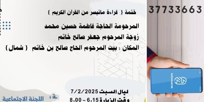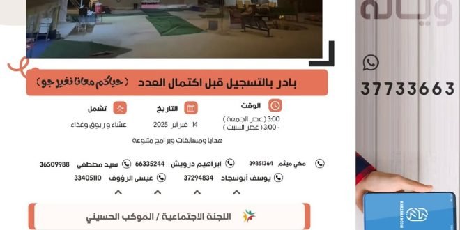 – رسوم التسجيل : ٣ دينار – تاريخ الرحلة : يوم الجمعة ١٤ فبراير ٢٠٢٥ م – وقت الرحلة : من الساعة ٣ عصرا ( الجمعة ) إلى ٣ عصرا ( السبت ) – تشمل *عشاء و ريوق وغداء* – التسجيل لجميع الفئات العمرية *(مسابقات وبرامج متنوعة وهدايا قيمة للحضور …