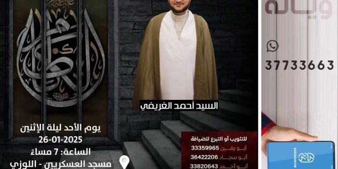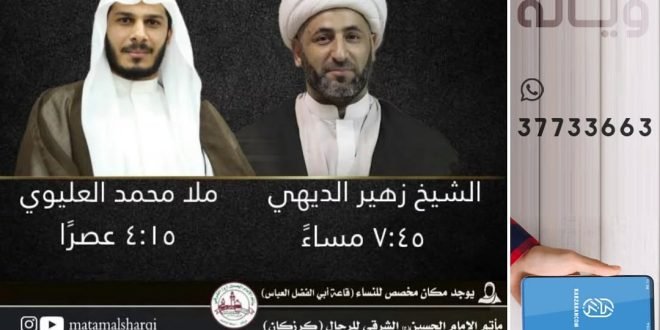 ⬅️ *مجلس المرحوم الحاج عبدالله الخاتم* وذلك في ليلة الجمعة الموافق ٢٣ يناير و ستكون القراءة ⏰ *الـسـاعة 7:00 مساءً* *بمـشاركة الـخـطـيب / الشيخ جعفر السعيد.* بعد قراءة دعاء كميل. والله ولي التوفيق. المصدر: إنستغرام