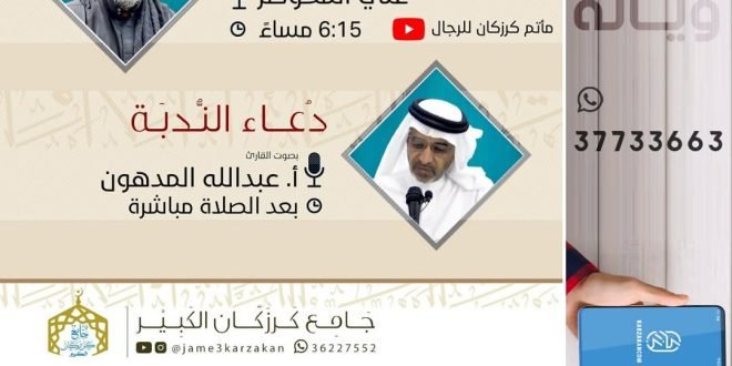 …•|【 دعاء كميل&دعاء الندبة 】|•… 📖 *دعاء كميل* 🗓 *16/01/2025* ⏱6:15 مساءاً 🗣 القارئ علي المخوضر 📺 *الـبـث المباشر على قناة* *مـأتـم كـرزكـان للرجـال* @matamkarzakan 📖 *دعاء الندبة* 🗓 *17/01/2025* ⏱ بعد صلاة الصبح مباشرة 🗣 القارئ أ. عبدالله المدهون @jame3karzakan المصدر: إنستغرام