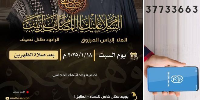 إحياء ذكرى شهادة السيدة زينب (ع) اليوم : السبت التاريخ :18.01.2025 الوقت : بعد صلاة الظهرين مباشرة الخطيب : الملا إلياس المرزوق الرادود : طلال نصيف يهدى ثواب هذا المجلس إلى أرواح المرحومين ▪️ الرجال : • الحاج عيسى علي محمد • الحاج مكي باقر علي • الحاج عباس عيد …