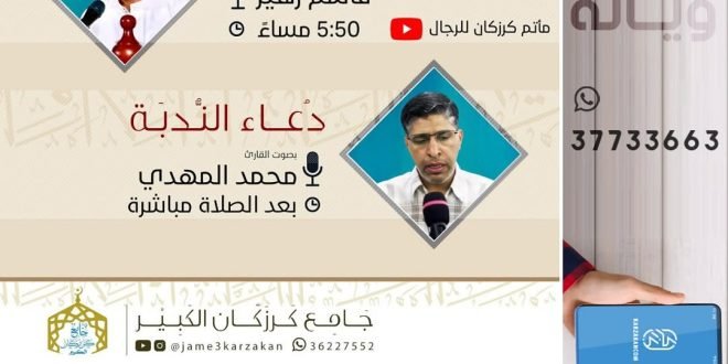 …•|【 دعاء كميل&دعاء الندبة 】|•… 📖 *دعاء كميل* 🗓 *12/12/2024* ⏱5:50 مساءاً 🗣 القارئ قاسم زهير 📺 *الـبـث المباشر على قناة* *مـأتـم كـرزكـان للرجـال* @matamkarzakan 📖 *دعاء الندبة* 🗓 *13/12/2024* ⏱ بعد صلاة الصبح مباشرة 🗣 القارئ محمد المهدي @jame3karzakan المصدر: إنستغرام