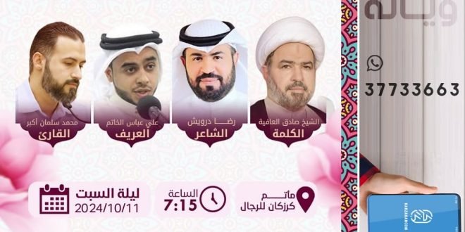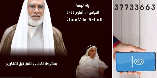 ⬅️ *مجلس المرحوم الحاج عبدالله الخاتم* وذلك في ليلة الجمعة الموافق ١٠ اكتوبر و ستكون القراءة ⏰ *الـسـاعة 7:15 مساءً* *بمـشاركة الـخـطـيب / الشيخ خليل الشاخوري.* بعد قراءة دعاء كميل. والله ولي التوفيق. المصدر: إنستغرام