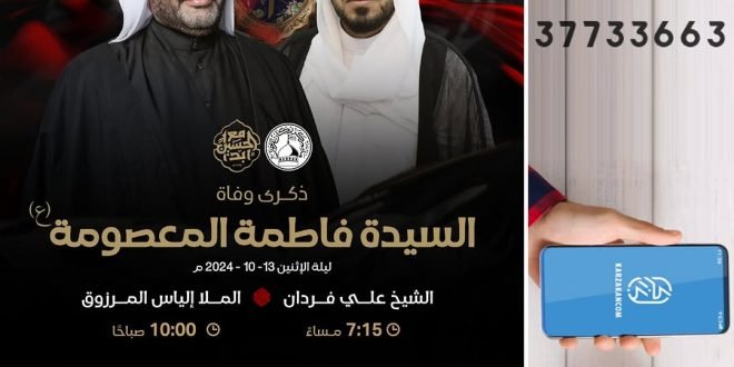 ┈╾۞ *ذكــرىٰ رحـيل السيّدة* ┈╾۞ *فاطمة المعصومة ’ع‘* ⌯ ليلة الإثنين 13 – 10 – 2024 م ۞ الخطابة الحسينية ≣ الشيخ علي فردان ≣ 07:15 مساءً ┈━ •۞[ اﻟسَّـﻟامُـ ﻋَﻟَﯾْﮑِ ﯾَا ﻓَاطِمَـةَ اﻟمَـﻋْصُۆمَھ ]۞• ━┈ ⌯ الإثنين 14 – 10 – 2024 م ۞ الخطابة الحسينية ≣ الملا إلياس …