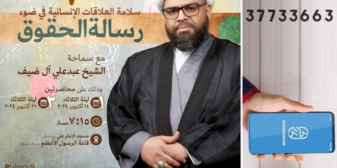 ✾ سلامة العلاقات الإنسانية في ضوء “رسالة الحقوق” مع | سماحة الشيخ عبدعلي آل ضيف *وذلك على محاضرتين* المحاضرة الأولى: (14.10.2024) ليلة الثلاثاء المحاضرة الثانية: (21.10.2024) ليلة الثلاثاء ⏳ 7:15 مساءً 🕌 مسجد الإمام علي (ع) – قاعة الرسول الأعظم ۩ التعليم الديني- كرزكان @taleemdk المصدر: إنستغرام