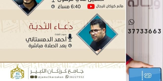 …•|【 دعاء كميل&دعاء الندبة 】|•… 📖 *دعاء كميل* 🗓 *19/09/2024* ⏱6:40 مساءاً 🗣 القارئ حسين علي مرهون 📺 *الـبـث المباشر على قناة* *مـأتـم كـرزكـان للرجـال* http://www.youtube.com/MatamKarzakan/live 📖 *دعاء الندبة* 🗓 *20/09/2024* ⏱ بعد صلاة الصبح مباشرة 🗣 القارئ أحمد الدمستاني @jame3karzakan المصدر: إنستغرام