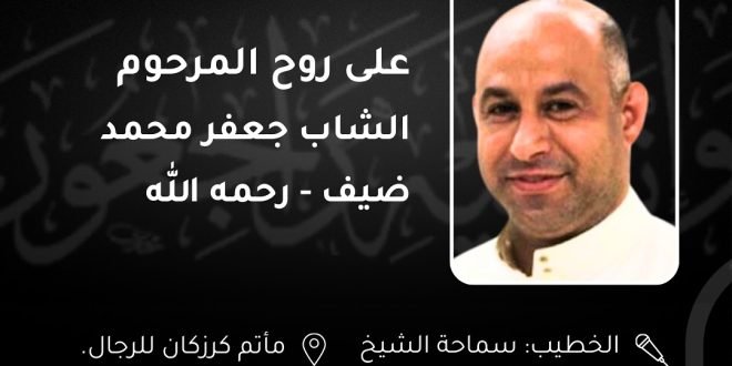◼️مجلس تأبيني على روح المرحوم الشاب جعفر محمد ضيف، مساء يوم الخميس الموافق 25/4/2024. الخطيب: سماحة الشيخ عمار الحداد. الوقت: 8:30 مساءً. للرجال: مأتم كرزكان للرجال. الفاتحة، المصدر