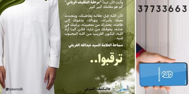 التعليم الديني تعلن عن اقتراب موعد انطلاق نسخة جديدة من برنامج التكليف الشرعي لطلبة الثاني الإعدادي المقبلين على التكليف @taleemdk المصدر