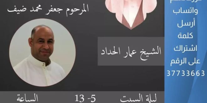 سيقام مجلس تأبين للمرحوم جعفر محمد ضيف في مأتم كرزكان للرجال ليلة السبت القادم الموافق 13_5_2022 م الساعة الثامنة مساءً.. الفاتحة لروحه وأرواح المؤمنين والمؤمنات أجمعين.. #كرزكان #كرزكانكم #أخبار_كرزكانكم #منوعات_كرزكانكم #قريتنا #أخبار_القرية #قريتنا_الحبيبة #قرية_كرزكان #أخبار_قرية_كرزكان #قرى_البحرين #مملكة_البحرين #البحرين #بحريننا #bahrain #karzakan #karzakancom #karzakancom_news المصدر