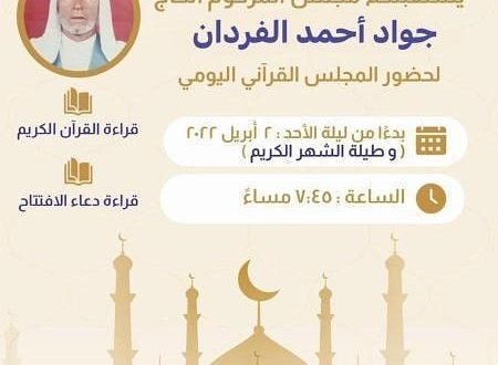 🌙 *مأتم البصارى* 🌙 نهنئكم بحلول شهر رمضان المبارك واعانكم الله على صيامة قيامه أوقات المجالس الرمضانيه *قراءة القرآن الكريم والدعاء* ⌚ 7:30 مساءاً *محاضرات الشيخ شاكر الفردان* ⌚ 9:00 مساءاً *🎥 للمتابعة عبر البث المباشر على قناة الماتم باليوتيوب* *https://www.youtube.com/channel/UCDpriji7Vs1X14xNeWv0Yjg* *نرجوا الإلتزام بالاحترازات والتباعد الإجتماعي* نسألكم الدعاء ♦لمتابعة أخبار …