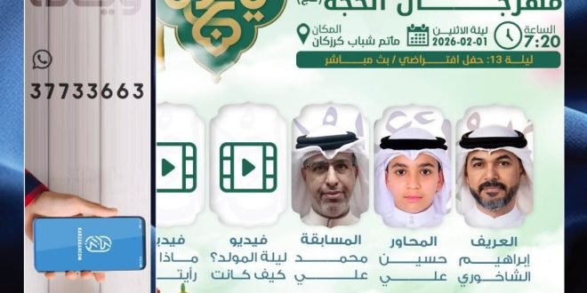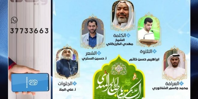≣▕ نـبـــــارک لـكــم ذكـــــرىٰ ≣≣ مولـد الإمام المھدي ‘عج’ ≣≣ مـھـــــرجـان الحُجّة ‘عج’ ᪥ ليلة 13: حفل افتراضي / بث مباشر ❉ العــرافة: إبراهيم الشاخوري ❉ المحـاور: حسين علي ❉ المسابقة: محمد علي ❉ ڨـــيديـو: ليلة المولد؟ كيف كانت ❉ ڨـــيديـو: ماذا لو رأيته؟ خـارج المأتم – أركـان متنوعة: ❖ …