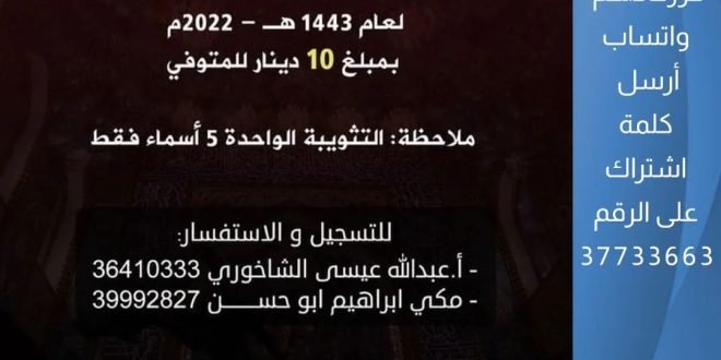 مأتم الإمام الحسين الشرقي يعلن عن: فتح باب التسجيل للتثويبات المشتركة لعام 1443هـ _2022 م بمبلغ 10دينار للمتوفي.. @matamalsharqi #مأتم_الحسين_الشرقي #كرزكان #كرزكانكم #أخبار_كرزكانكم #منوعات_كرزكانكم #قريتنا #أخبار_القرية #قريتنا_الحبيبة #قرية_كرزكان #أخبار_قرية_كرزكان #قرى_البحرين #مملكة_البحرين #البحرين #بحريننا #bahrain #karzakan #karzakancom #karzakancom_news المصدر