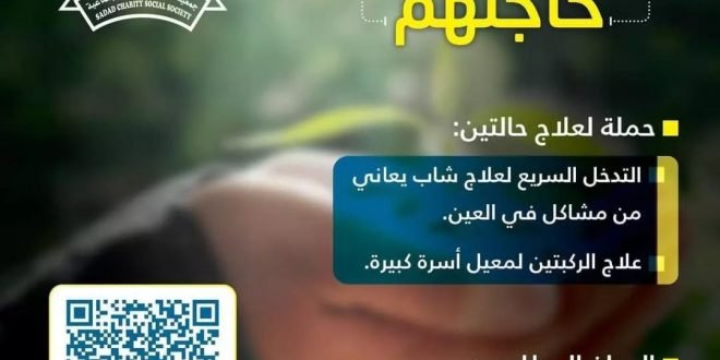 فَمَن یَعۡمَلۡ مِثۡقَالَ ذَرَّةٍ خَیۡرࣰا یَرَهُۥ) جمعية صدد الخيرية الاجتماعية تعلن عن حملتها الإنسانية *نقضي حاجتهم* 🌱🌿 لعلاج حالتين: 🔹 شاب لديه مشاكل في العين ويستعدي التدخل السريع لعلاجه 🔸 علاج الركبتين لمعيل اسرة كبيرة *معًا* .. فلنقضِ حاجتهم *المبلغ المطلوب 6,000 دينار* لقضاء حوائجكم ودفع البلايا عنكم 💳 *للمساهمة:* …