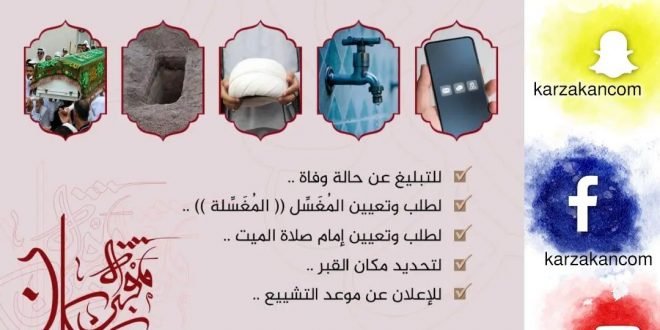 *تعلن* *إدارة مقبرة كرزكان* *عن إنشاء مركز اتصالات للمقبرة عبر الاتصال المباشر على الرقمين التاليين* 37376622 – 37370088 🔸 للتبليغ عن حالة الوفاة 🔸 لطلب وتعيين المغسل (المغسلة) 🔸 لطلب وتعيين إمام صلاة الميت 🔸 لتحديد مكان القبر 🔸 للإعلان عن موعد التشييع *كما تنوه الإدارة أنها غير مسؤولة عن …