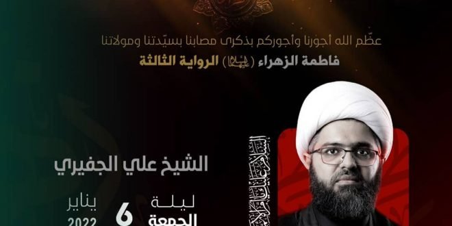 ‘ ۩ مأتم كرزكان .. *« عظم الله أُجوركم وأُجورنا بذكرى استشهاد السيدة فاطمة الزهراء عليها السلام »* -الرواية الثالثة- 🎙️ *الخطيب* : الشيخ علي الجفيري ⏰ *الـوقـــت*: 7:15 مساءََ 🗓️ *ليلة الجمعة* 6/1/2022 📺 *الـبـث المباشر على قناة* *مـأتـم كـرزكـان للرجـال* http://youtube.com/MatamKarzakan/live ━─┄─━─┄─━─┄─━─┄─━ ارﺳل [ إشـﭠرٱک ] ﻋﺑر …
