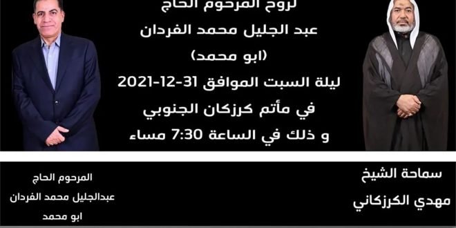 سيقام مجلس تأبين للمرحوم الحاج عبد الجليل محمد الفردان (بومحمد) ليلة السبت الموافق 31ديسمبر 2021 🎙️الشيخ مهدي الكرزكاني ⏳7:30 مساءاً 🕌 مأتم كرزكان للرجال الفاتحة.. #مأتم_كرزكان_للرجال #كرزكان #كرزكانكم #أخبار_كرزكانكم #منوعات_كرزكانكم #قريتنا #أخبار_القرية #قريتنا_الحبيبة #قرية_كرزكان #أخبار_قرية_كرزكان #قرى_البحرين #مملكة_البحرين #البحرين #بحريننا #bahrain #karzakan #karzakancom #karzakancom_news المصدر