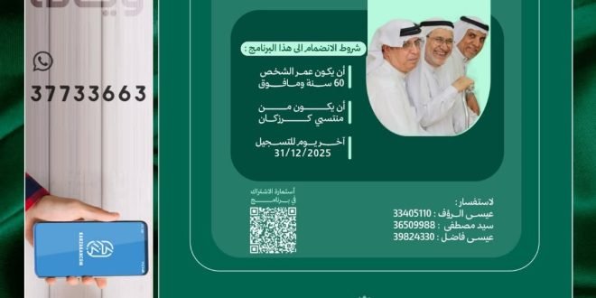 «دار الآباء» ويهدف هذا المشروع إلى رعاية الآباء وكبار السن من أهالي منطقة كرزكان وذلك عبر تنظيم مجموعة من الفعاليات الاجتماعية والثقافية والصحية وغيرها تحت إشراف اللجنة الاجتماعية التابعة للجمعية. شروط الانضمام إلى البرنامج: • أن يكون عمر المشارك 60 عامًا فما فوق. • أن يكون من منتسبي قرية كرزكان. …
