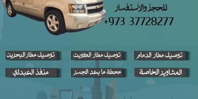 ❝❝ *مُــوَاصَــلاتُ ٱلـمَــدْهُــونْ* ❞❞ لخدمات توصيل المشاوير والـرحــــلات الـخـــاصــــة ☎ للحجز والإستفسار ☎ 37728277 +973 🚖 توصيل مطار الـدمــام 🚖 توصيل مطار الكـويت 🚖 توصيل مطار البحرين 🚖 محطة مـا بعد الجـسر 🚖 مـنـفــــــذ الـعــــبدلــي 🚖 المشـاوير الـخـــاصـــة 🚖 توصيل للرياض 🚖 توصيل لدولة قطر *✴️فضلا وليس أمرا* _♻️الرجاء النشر …