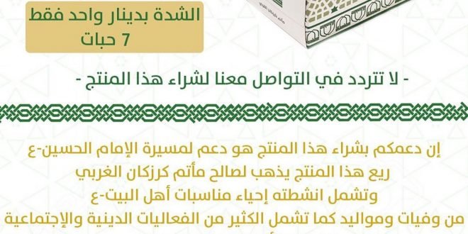 مناديل فاخرة .. تتميز بمتانتها .. وقوتها في إمتصاص السوائل .. بسعر في متناول الجميع . 🏴 إن دعمكم بشراء هذا المنتج هو دعم لمسيرة الإمام الحسين-ع- . ✅ ريع هذا المنتج يذهب لصالح مأتم كرزكان الغربي وتشمل انشطته إحياء مناسبات أهل البيت-ع- من وفيات ومواليد كما تشمل الكثير من …